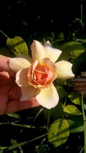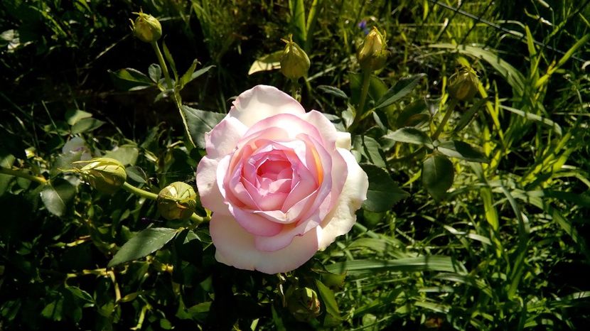 Minunea mea cu opt infloriri pe an . E un trandafir-pomisor. E primul trandafir primit de" casa noua" plantat in 2015. Era tare firav. In primavara nu am stiut sa-l coafez. Am taiat destul de putin din ramurele. S-a dezvoltat cu repeziciune si in martie l-am gasit rupt de la mijloc. Plouase si florile erau pline de apa... Suparata l-am legat fedeles si am luat lastari. Dar...desi peste 75% din trunchiul principal era rupt s-a refacut. Voi avea grija in primavara sa-l tund bine ! Pana la incident nu era sustinut decat de un arac. Acum are doi si sunt solizi.